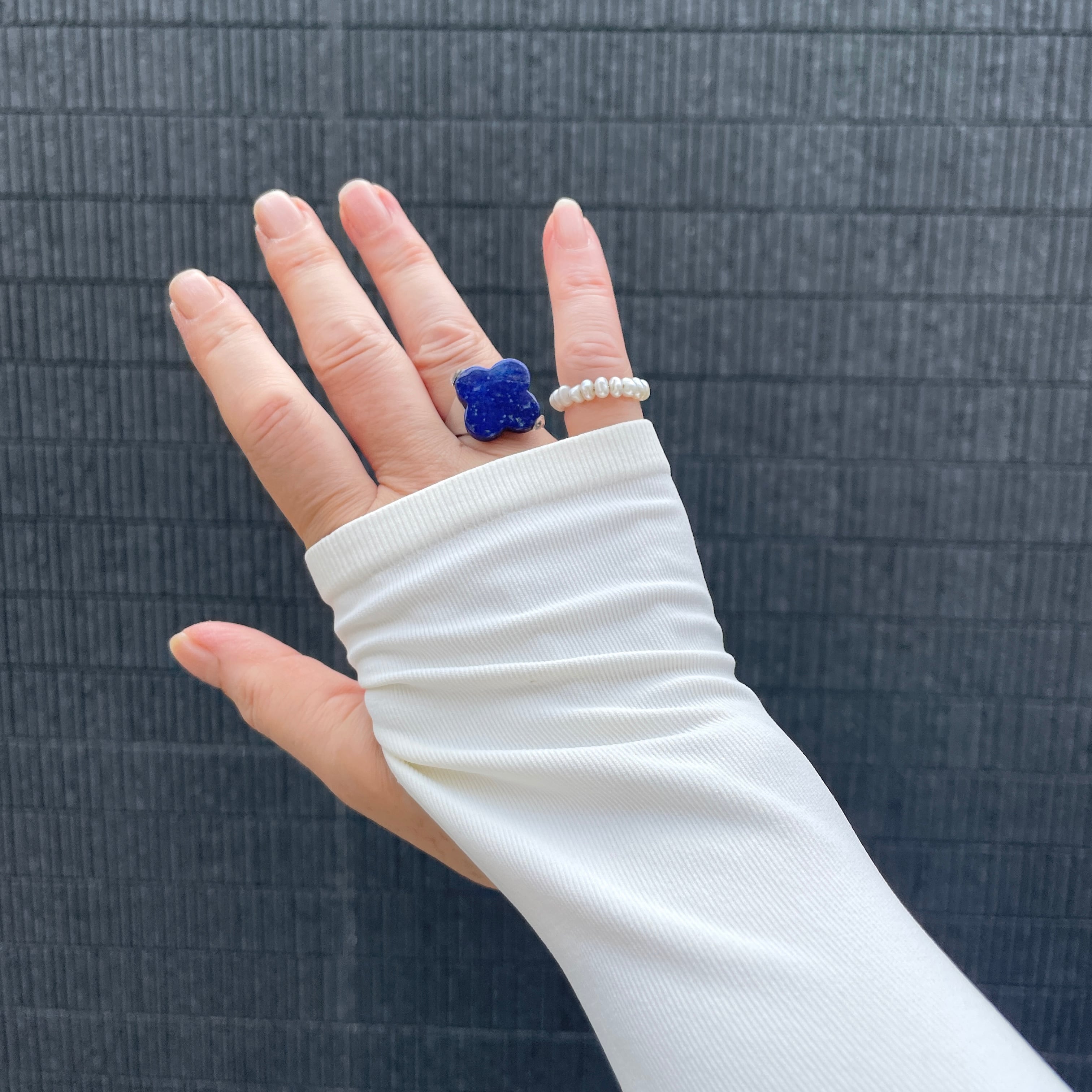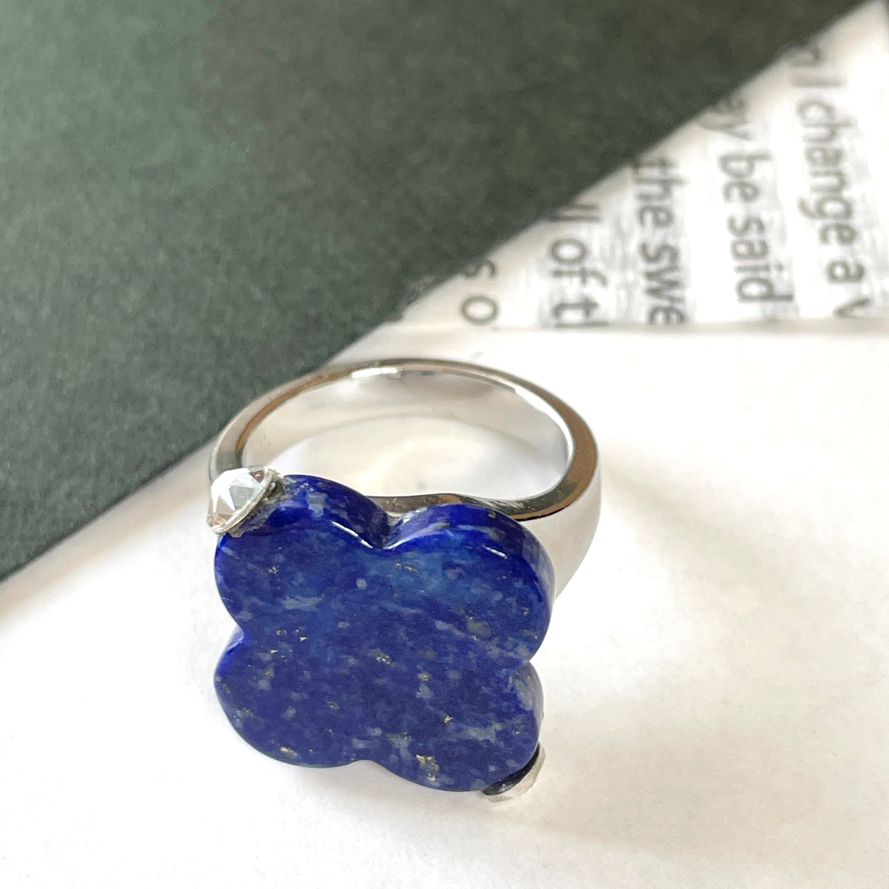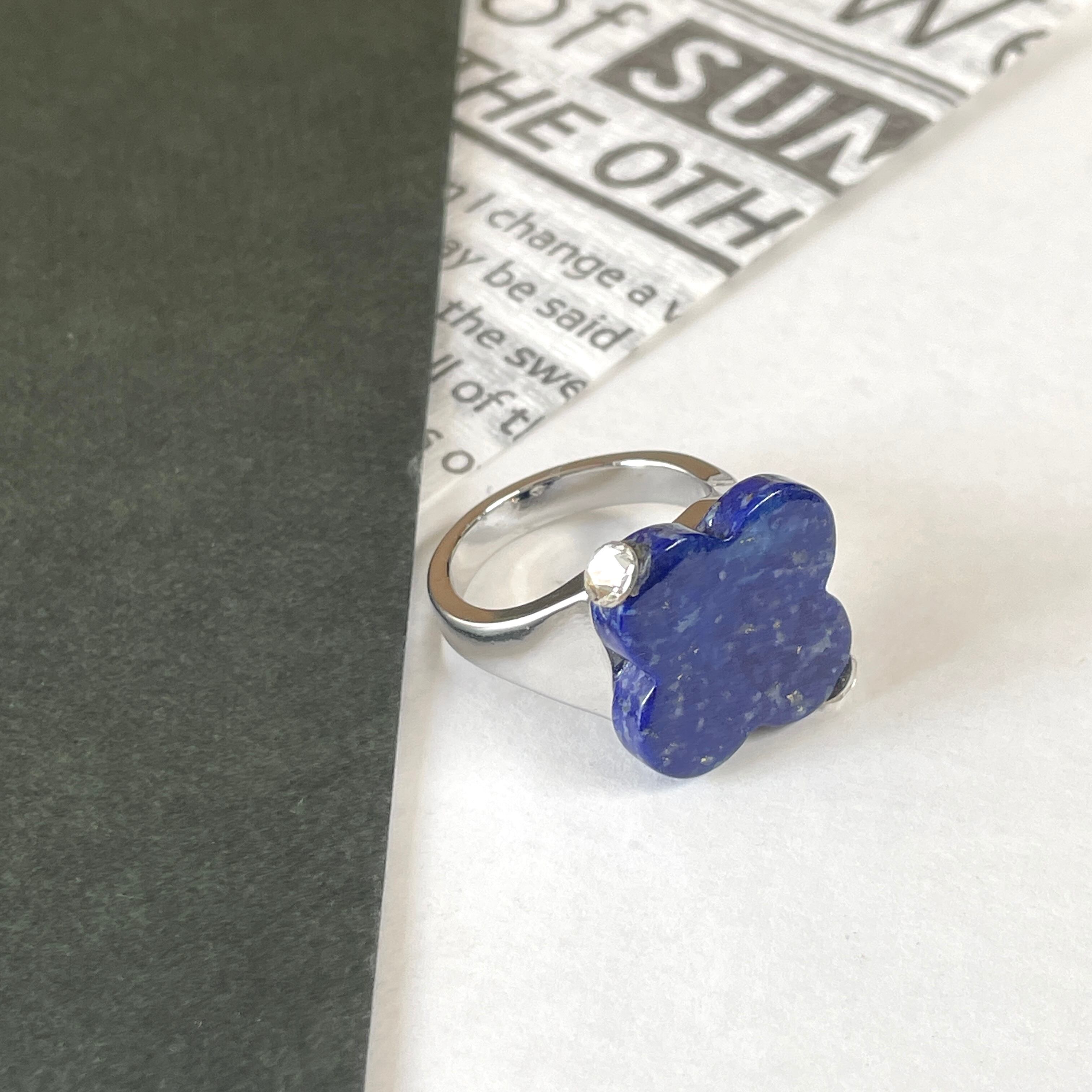 深い青色が特徴の天然石ラピスラズリを使用した美しいリングです。自然が生み出した個性的な色合いと模様が、手元に華やかさをプラスしてくれます。シンプルながらも印象的なデザインで存在感たっぷりインパクトあるアイテムです。