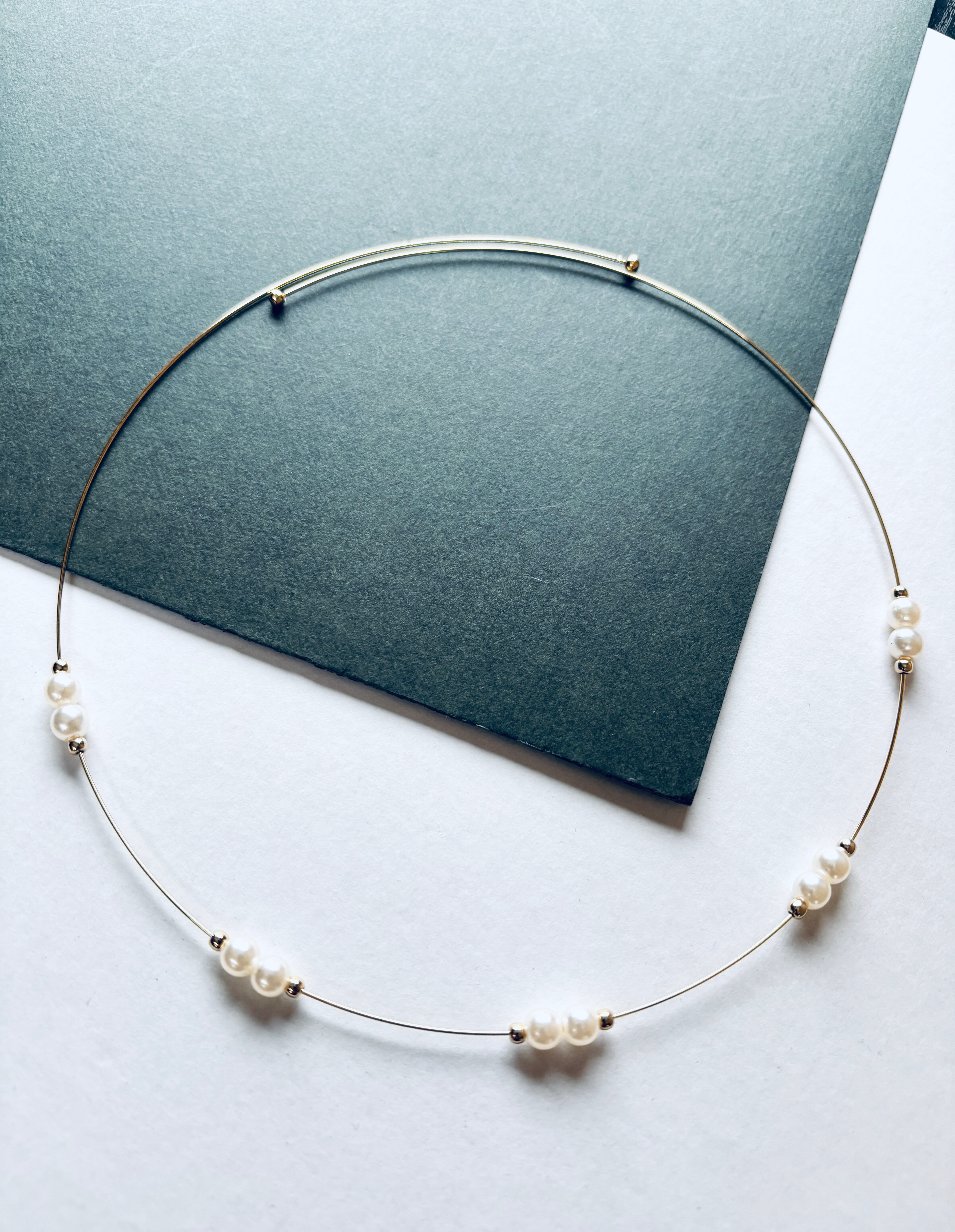 チョーカー風 パールビーズ ワイヤーネックレス