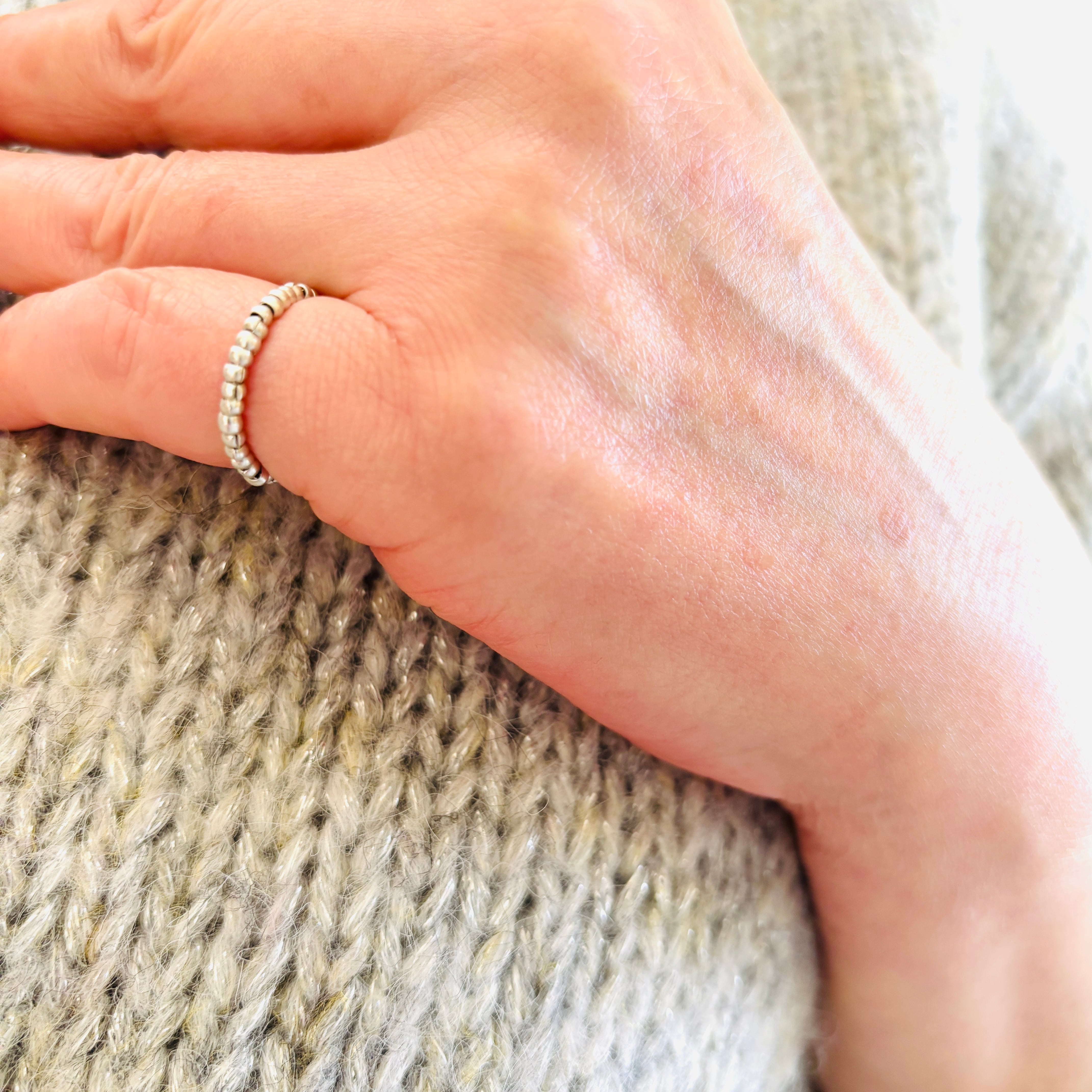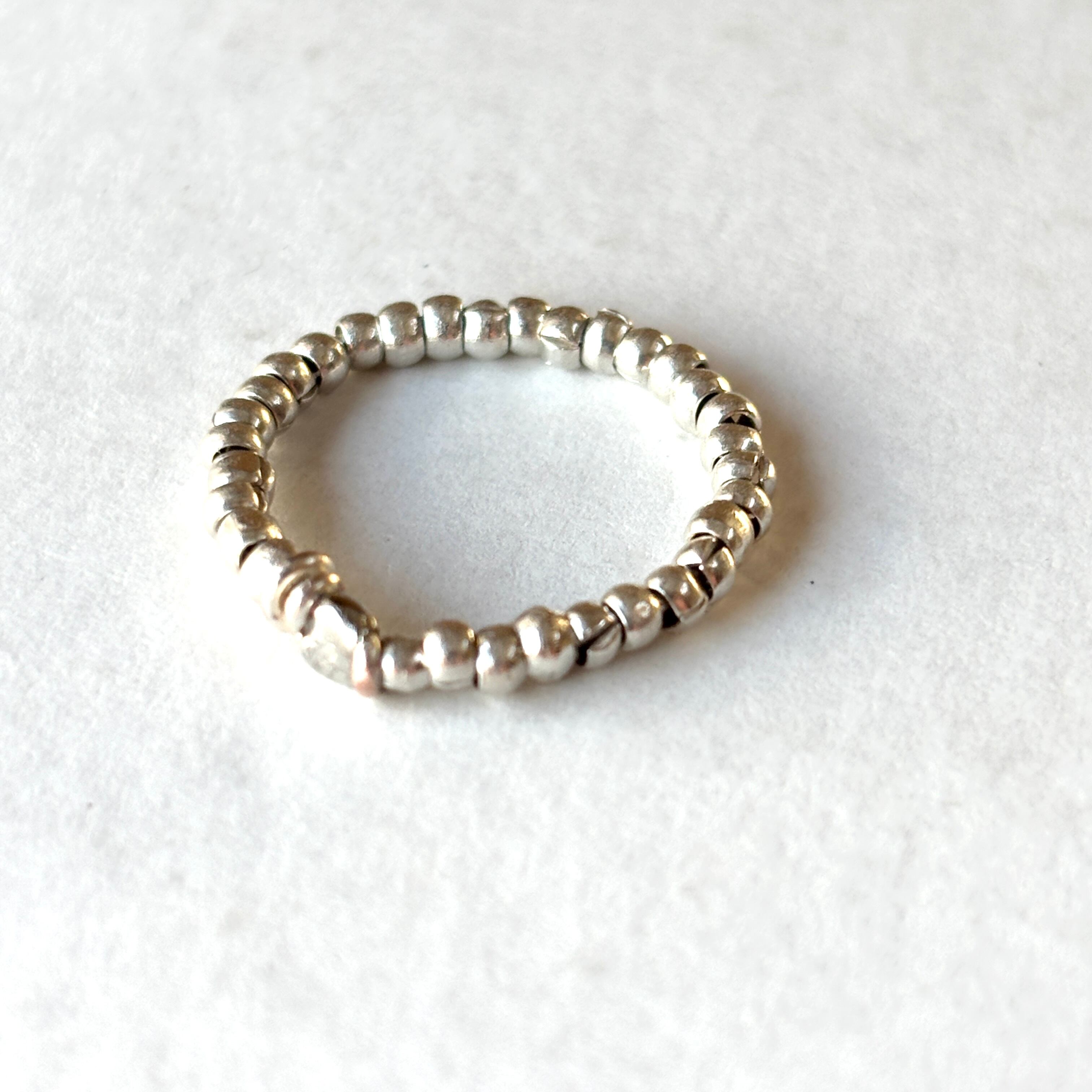 独特の風合いをもつカレンシルバービーズをふんだんにあしらったピンキーリングです。